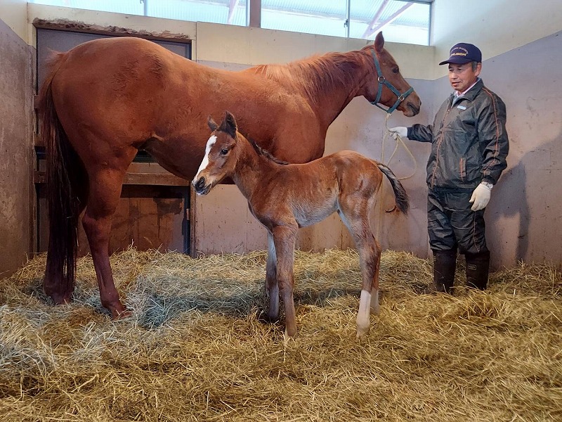 産まれたばかりの仔馬が母ラフェスタに寄り添ってすることは…