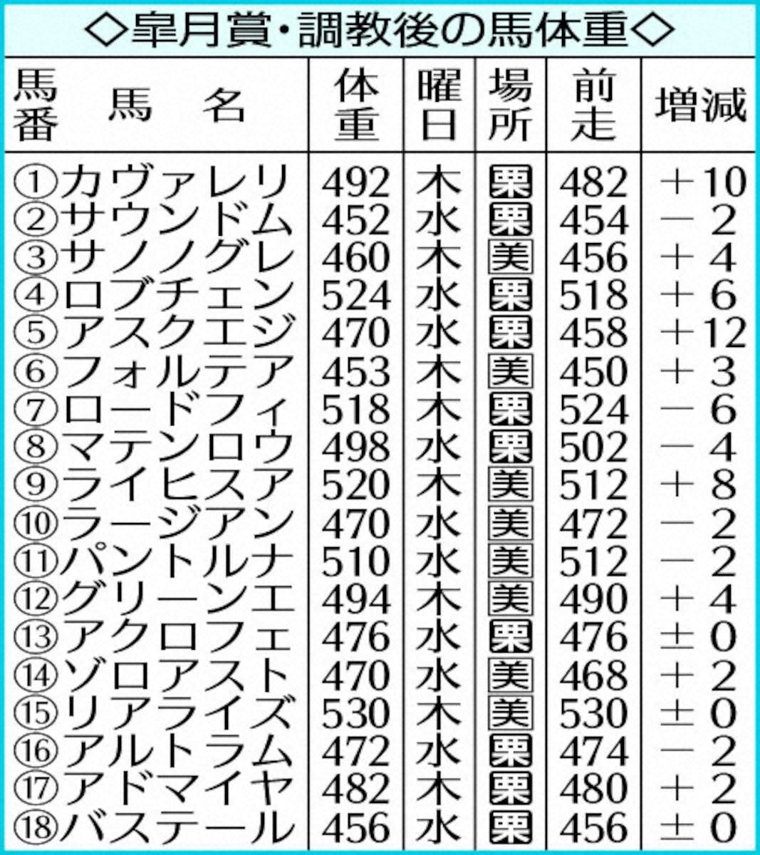 カヴァレリッツォはいい意味で軽さがあって、きびきびと周回する。関東初遠征の今回も同様に落ち着いていれば理想的。前走のグリーンエナジーは体をすっきりと見せ、筋肉の張りも抜群だった。今回も引き締まって見えるようなら文句なしだ。
